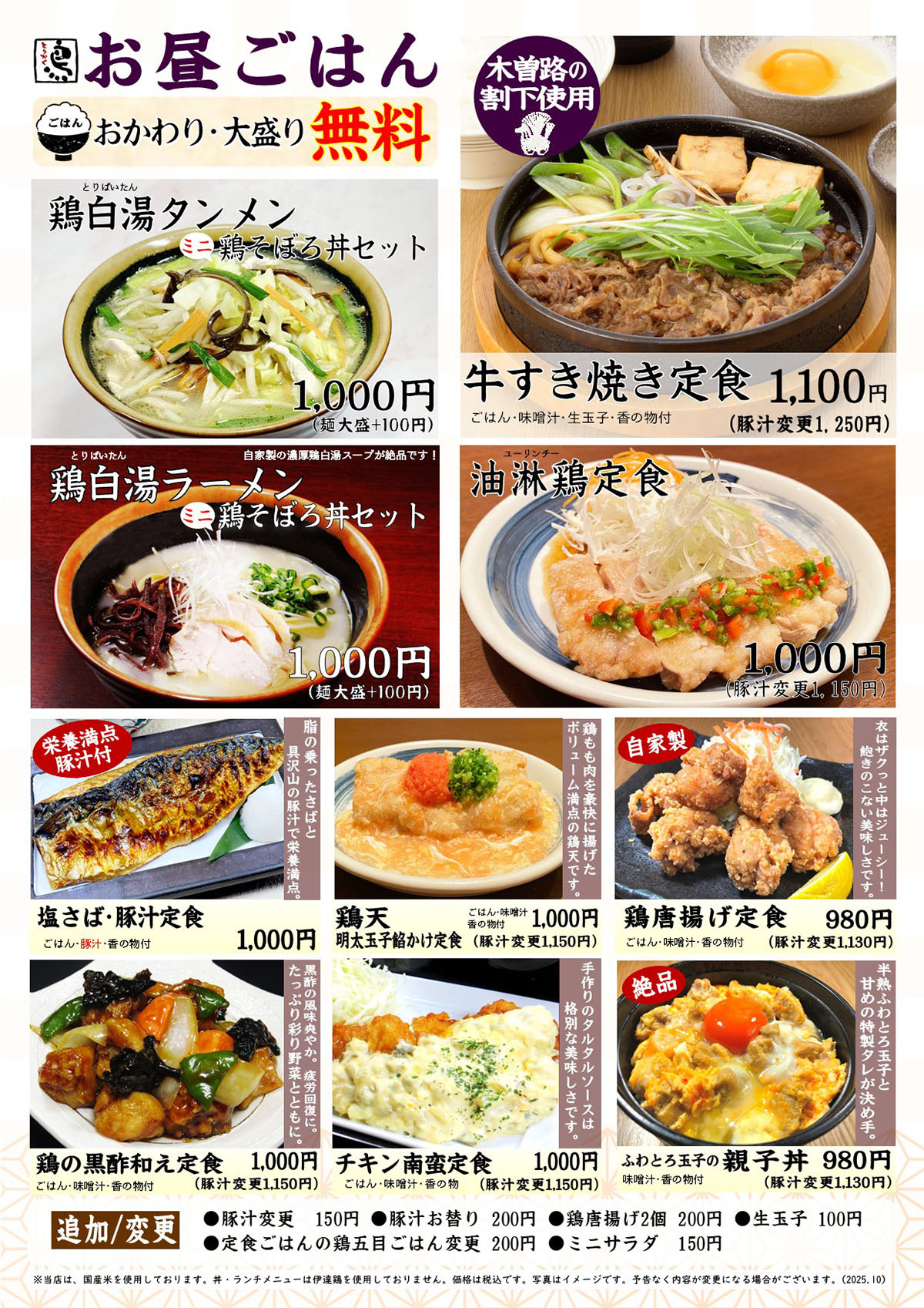 とりかく 日比谷シティ店 ランチタイム 11:30~ とりかく 品川インターシティ店 ランチタイム 11:30~ とりかく 新宿野村ビル店 ランチタイム 11:30~ ※平日のみの販売です。 ※月曜及び祝日の翌日は、一部店舗で[鶏白湯タンメン]・[鶏白湯ラーメン]の販売を中止させて頂きます。 店舗案内はこちら