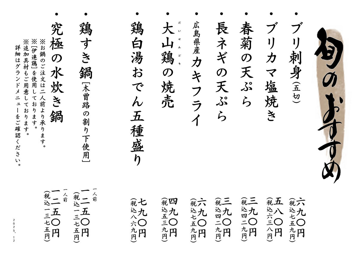 旬のおすすめメニュー